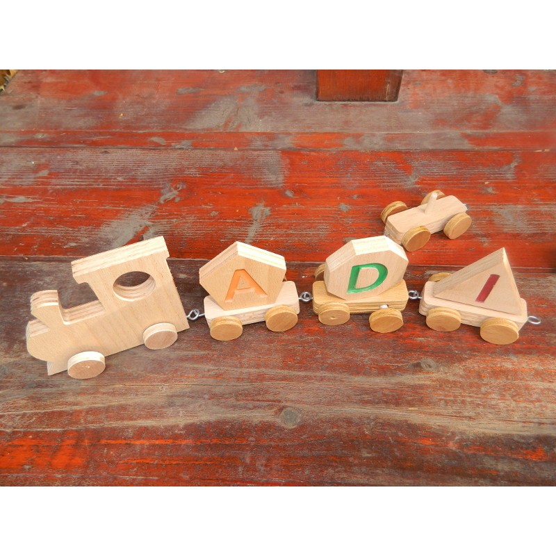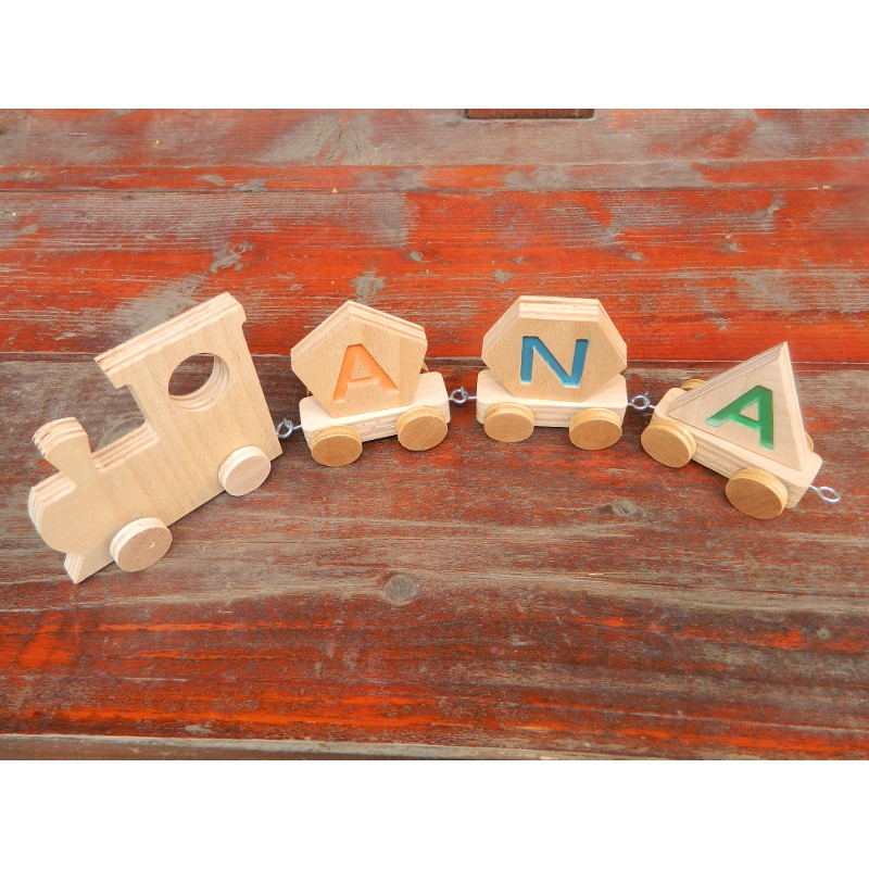 Tren din lemn personalizat cu numele copilului 3 litere