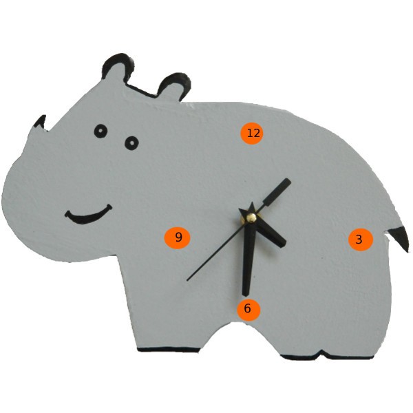 Ceasul din lemn în formă de hipopotam poate fi un cadou special și o variantă amuzantă pentru decorarea camerei copiilor. Totodată ajută copii să deprindă noțiunea timpului.